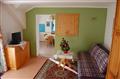 aus: 1 Küche, 1 Wohnzimmer mit Doppelcouch, Dusche mit WC, 1 Schlafzimmer
